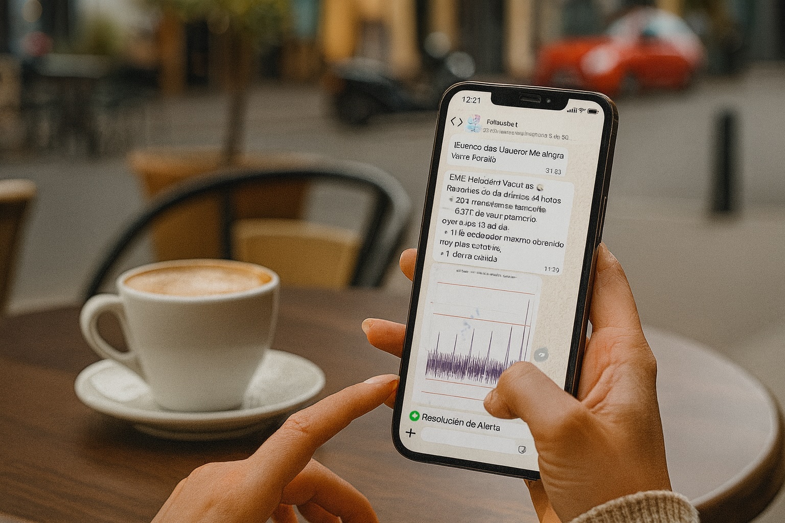 Además de recibir alertas, ahora podés consultar y compartir la información de tus sensores directamente desde tu cuenta de WhatsApp o Telegram. Una forma simple, rápida y disponible las 24 horas para saber, en todo momento, qué está pasando.